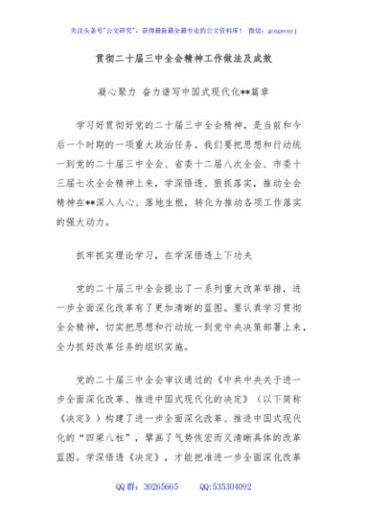 / 贯彻二十届三中全会精神工作做法及成效
