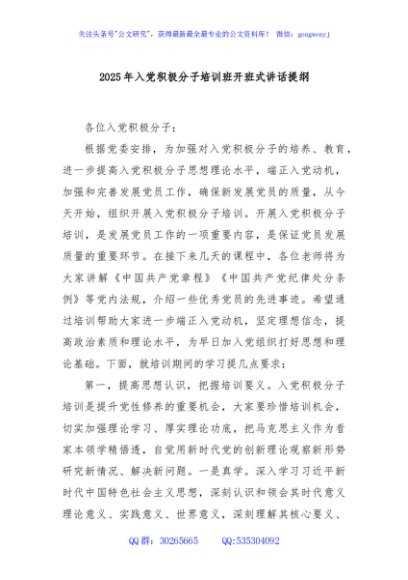 / 2025年入党积极分子培训班开班式讲话提纲