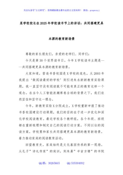 / 某学校校长在2025年学校读书节上的讲话:共同搭建更具本源的教育新场景