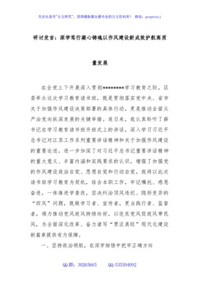 / 研讨发言:深学笃行凝心铸魂以作风建设新成效护航高质量发展