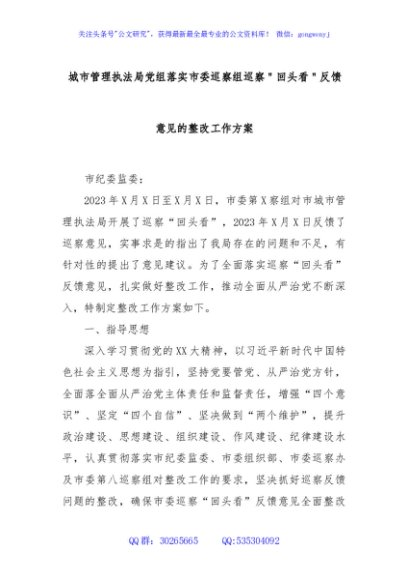 / 城市管理执法局党组落实市委巡察组巡察"回头看"反馈意见的整改工作方案