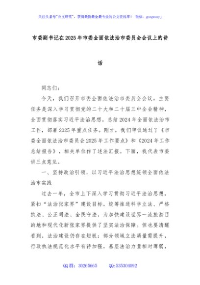 / 市委副书记在2025年市委全面依法治市委员会会议上的讲话