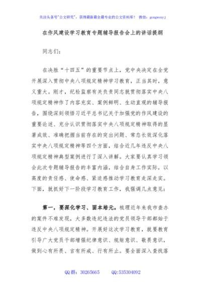 / 在作风建设学习教育专题辅导报告会上的讲话提纲