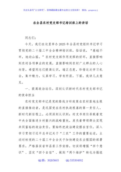 / 在全县农村党支部书记培训班上的讲话