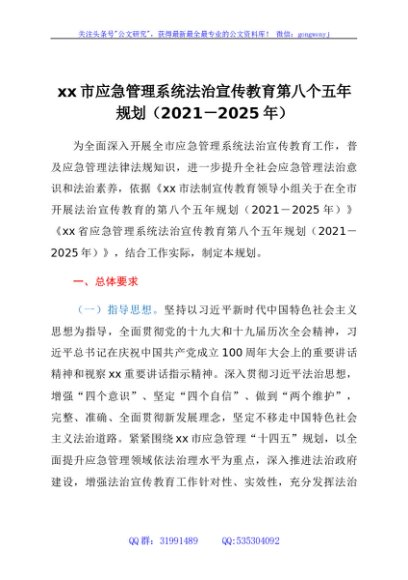 / xx市应急管理系统法治宣传教育第八个五年规划(2021-2025年)