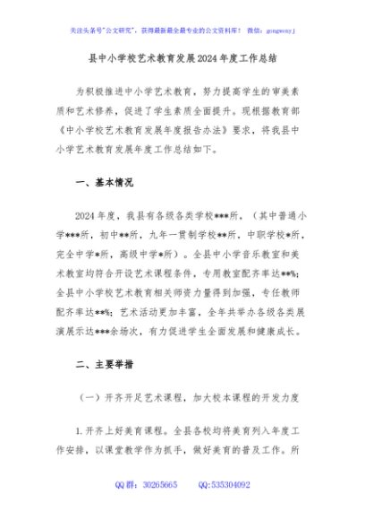 / 县中小学校艺术教育发展2024年度工作总结