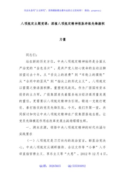 八项规定主题党课:深植八项规定精神根脉淬炼先锋旗帜力量