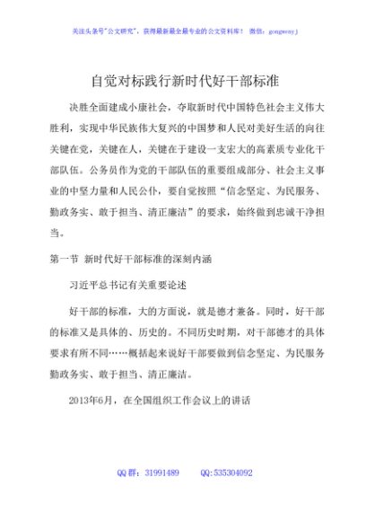 / 自觉对标践行新时代好干部标准