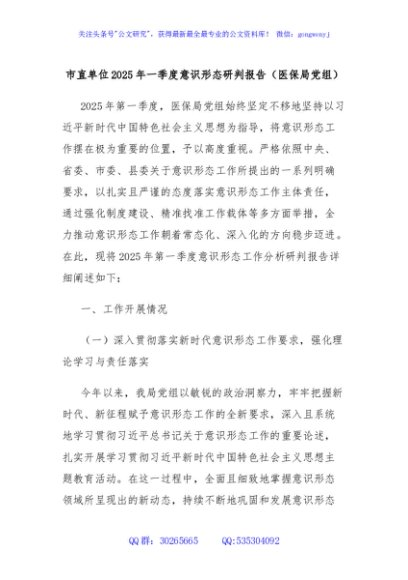 / 市直单位2025年一季度意识形态研判报告(医保局党组)