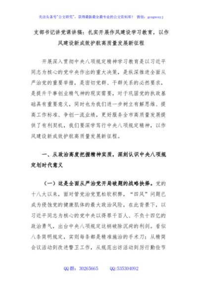 / 支部书记讲党课讲稿:扎实开展作风建设学习教育,以作风建设新成效护航高质量发展新征程