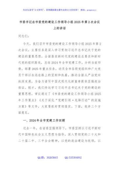 / 市委书记在市委党的建设工作领导小组2025年第2次会议上的讲话