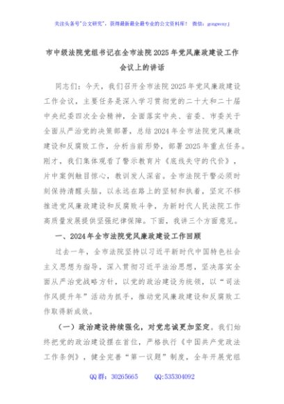 / 市中级法院党组书记在全市法院2025年党风廉政建设工作会议上的讲话