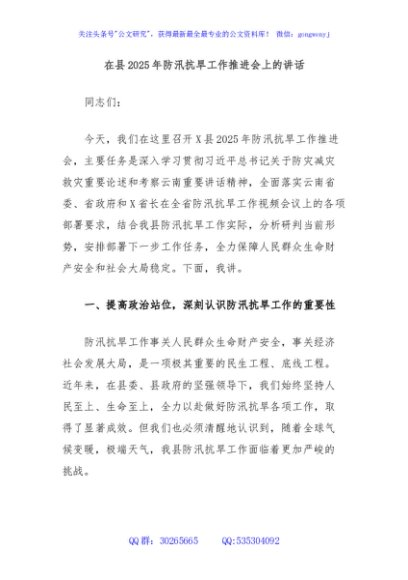 / 在县2025年防汛抗旱工作推进会上的讲话