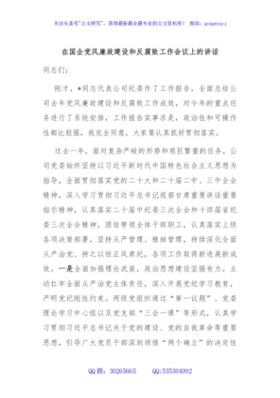 / 在国企党风廉政建设和反腐败工作会议上的讲话
