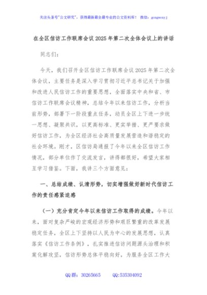 / 在全区信访工作联席会议2025年第二次全体会议上的讲话