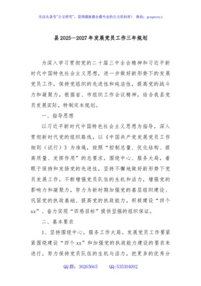/ 县2025—2027年发展党员工作三年规划