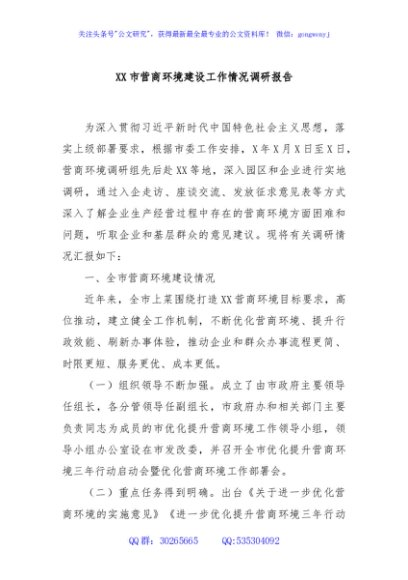 / XX市营商环境建设工作情况调研报告