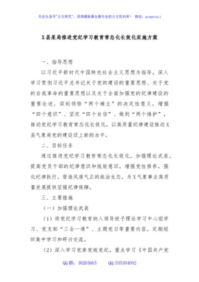 / X县某局推进党纪学习教育常态化长效化实施方案