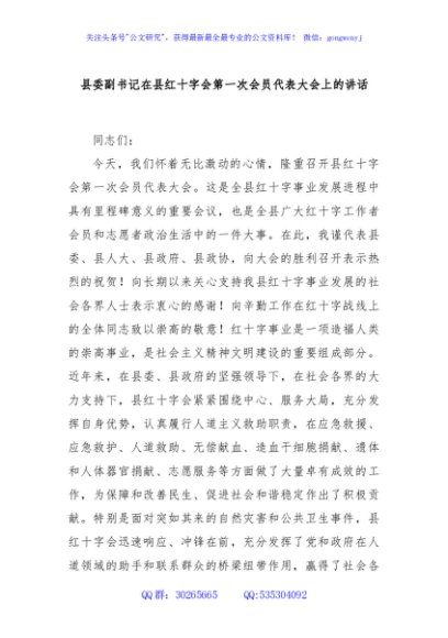 / 县委副书记在县红十字会第一次会员代表大会上的讲话