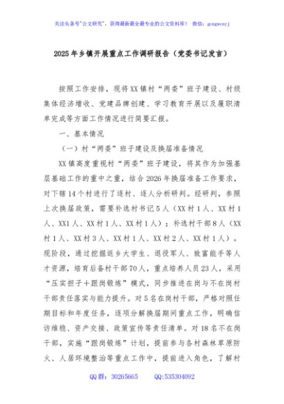 / 2025年乡镇开展重点工作调研报告(党委书记发言)