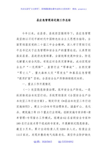 / 县应急管理局近期工作总结