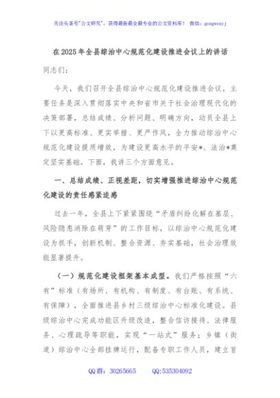 / 在2025年全县综治中心规范化建设推进会议上的讲话