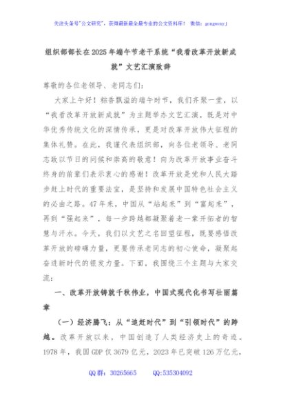 / 组织部部长在2025年端午节老干系统“我看改革开放新成就”文艺汇演致辞