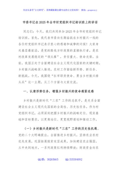 / 市委书记在2025年全市村党组织书记培训班上的讲话