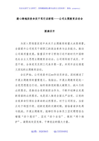 / 凝心铸魂担使命实干笃行启新程——公司主题教育启动会圆满召开