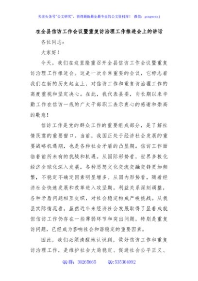/ 在全县信访工作会议暨重复访治理工作推进会上的讲话