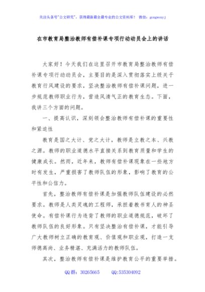 / 在市教育局整治教师有偿补课专项行动动员会上的讲话