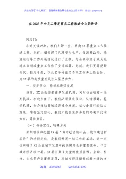 / 在2025年全县二季度重点工作推进会上的讲话