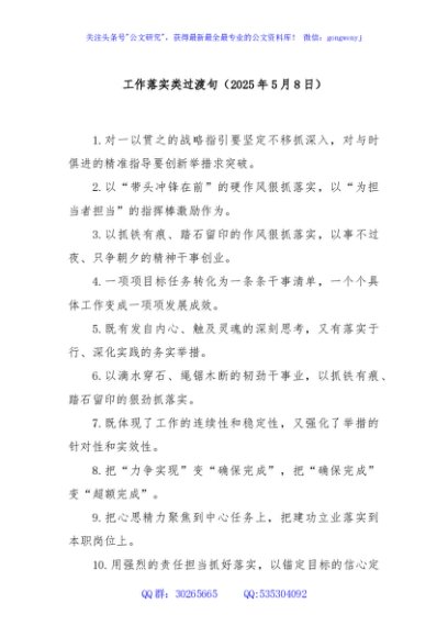 / 工作落实类过渡句(2025年5月8日)