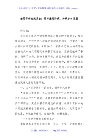/ 基层干部交流发言:筑牢廉洁防线,护航乡村发展