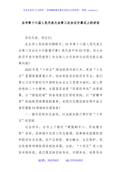 / 在市第十六届人民代表大会第三次会议开幕式上的讲话