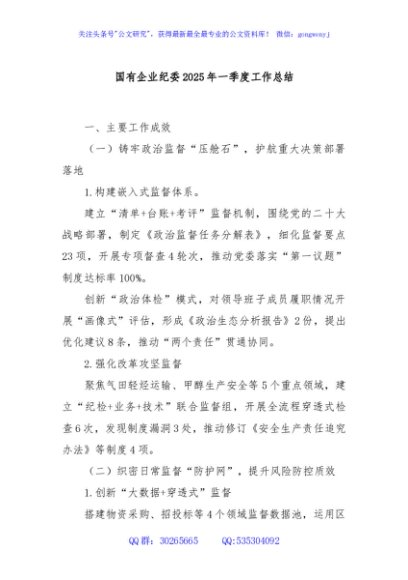 / 国有企业纪委2025年一季度工作总结