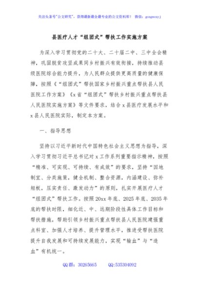 / 县医疗人才“组团式”帮扶工作实施方案