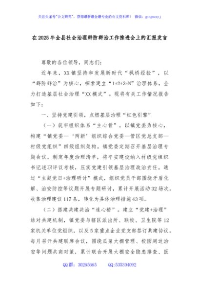/ 在2025年全县社会治理群防群治工作推进会上的汇报发言
