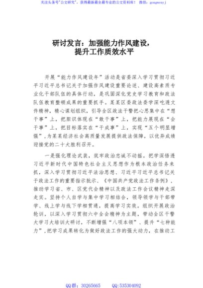 / 研讨发言:加强能力作风建设,提升工作质效水平