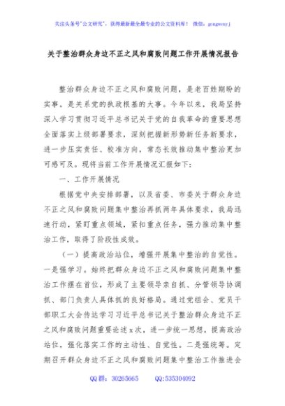 / 关于整治群众身边不正之风和腐败问题工作开展情况报告