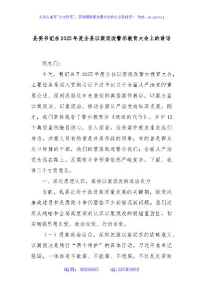 / 县委书记在2025年度全县以案促改警示教育大会上的讲话