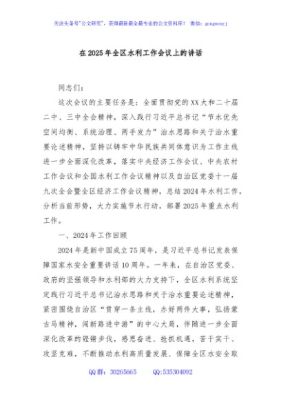 / 在2025年全区水利工作会议上的讲话