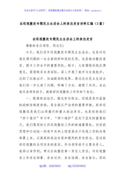 / (3篇)在巡视整改专题民主生活会上的表态发言材料汇编