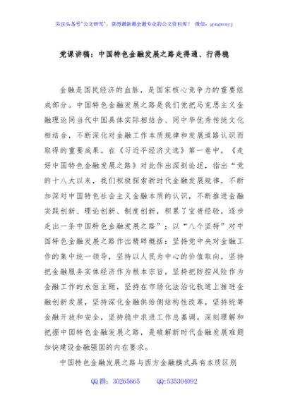 / 党课讲稿:中国特色金融发展之路走得通、行得稳