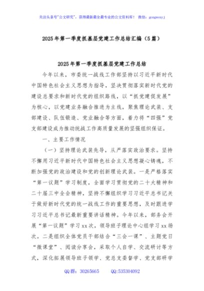 / (5篇)2025年第一季度抓基层党建工作总结汇编