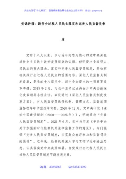 / 党课讲稿:践行全过程人民民主落实和完善人民监督员制度