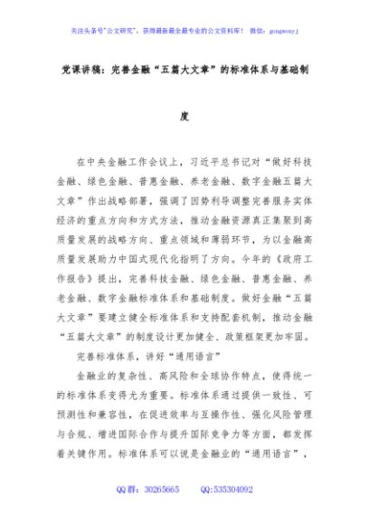 / 党课讲稿:完善金融“五篇大文章”的标准体系与基础制度
