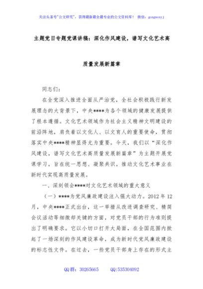 / 主题党日专题党课讲稿:深化作风建设,谱写文化艺术高质量发展新篇章