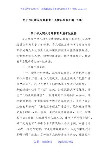 / (3篇)关于作风建设专题教育开展情况报告汇编