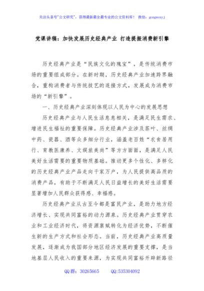 / 党课讲稿:加快发展历史经典产业 打造提振消费新引擎